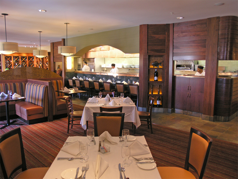 This restaurant was redesigned to enhance the food presentation, increase the conviviality, and provide a casual upscale dining experience for guests. The wine country location was used as the reference point for a strong tactile vocabulary of materials including stone, walnut, and copper.The outside bar patio was created to take advantage of the outdoor-oriented lifestyle of the area.
